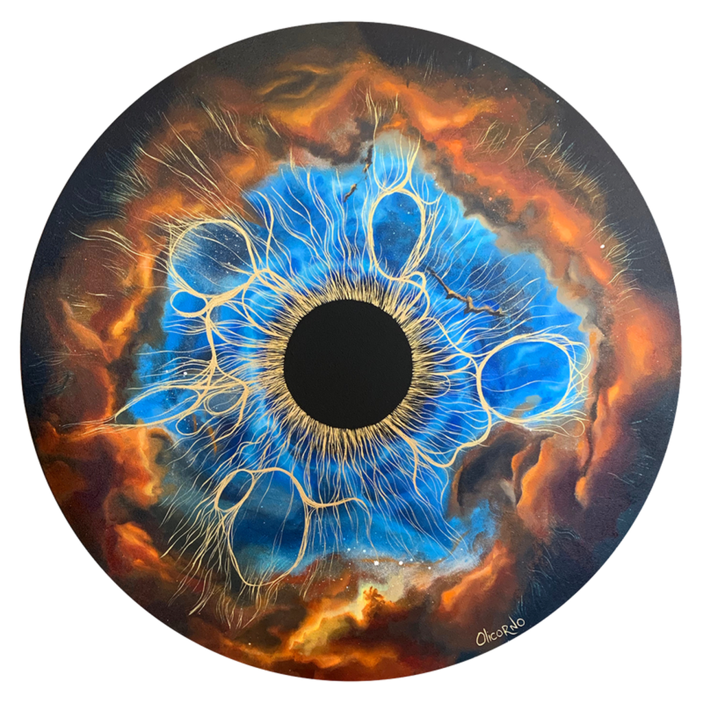 Cosmic phenomena are not meant to be studied exclusively through the scientific lens. The Universe is also a poet, a mystic, and It knows how to communicate with us in a symbolic way. This new series of acrylic paintings focus on the study of nebulae. They are stars that imploded at the end of their life, leaving behind them clouds of gas and radiation that veil the sky. Slow dances that evolve on periods of time beyond comparison on the human scale.